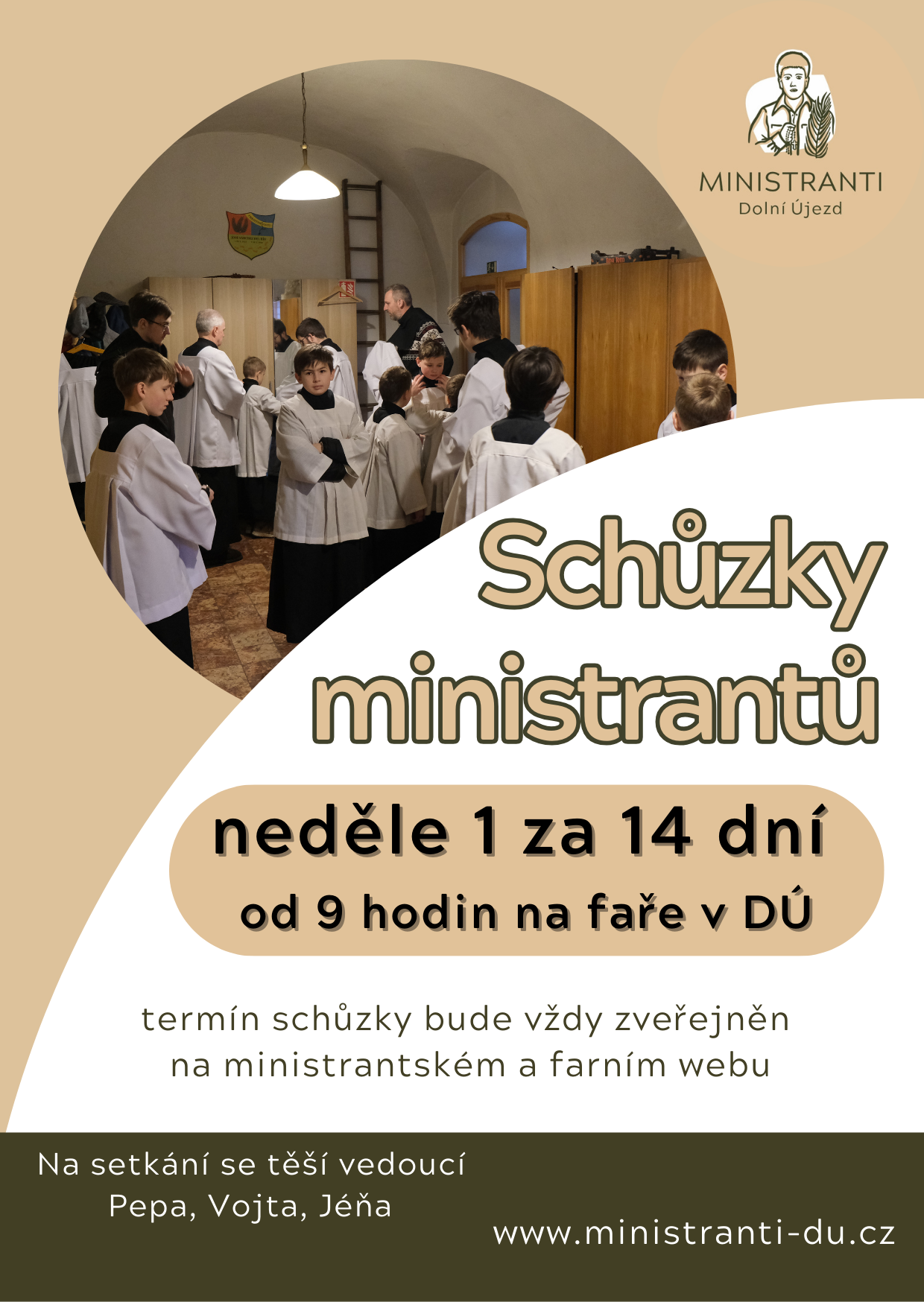 Pozvání na schůzku ministrantů, která proběhne v neděli 1. 3. 2026 od 9:00 hod na faře v Dolním Újezdě.
