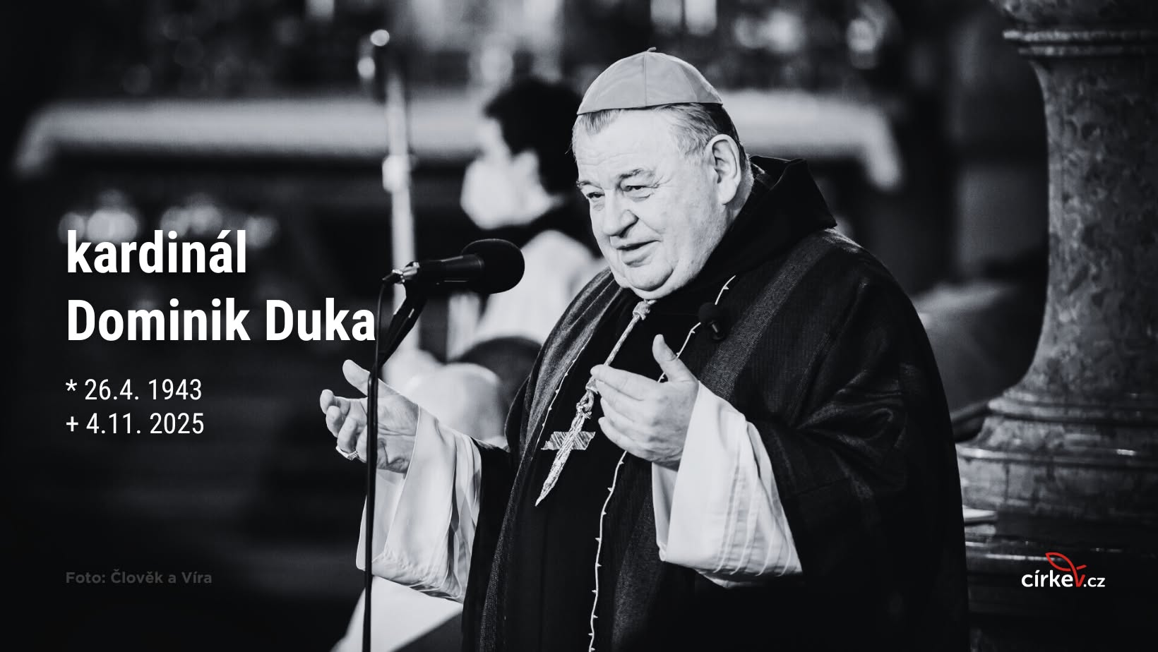 V úterý 4. listopadu byl ve tři hodiny ráno Pánem života povolán na věčnost ve věku 82 let kardinál Dominik Duka OP, emeritní pražský arcibiskup. Kondolenční kniha bude k dispozici od úterý 4. listopadu 12.00 v recepci arcibiskupského paláce.